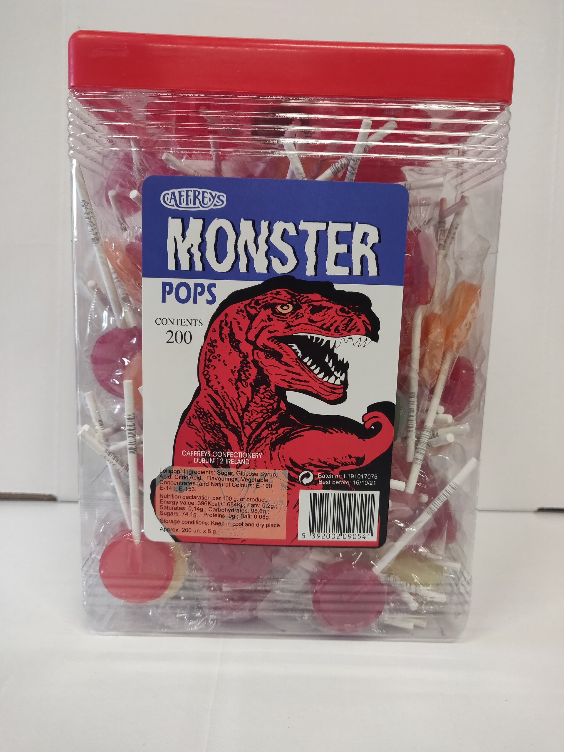 Caffreys Monster Lolly, packaged in a substantial quantity of 200 units priced at 10c each. These lollies boast a delightful array of flavors that appeal to a broad customer base, especially children. The 200-piece pack is designed for efficient stocking, making them perfect for those seeking a fun and unique candy option. Known for their extended shelf life and attractive pricing, these lollies are perfect for enjoyment.
