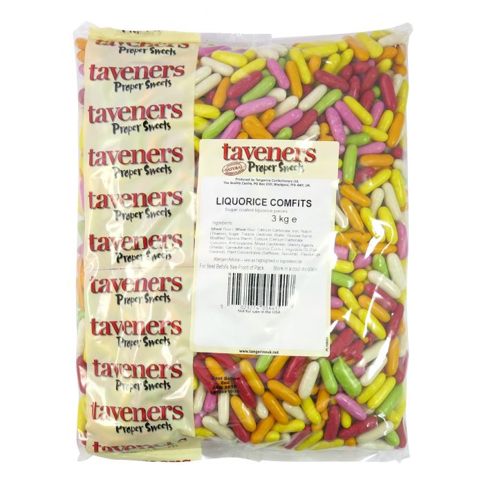Taveners Liquorice Comfits 3kg is an excellent offering for retailers looking for a classic, well-loved confectionery. This product features the unique taste of liquorice, coated in a crisp candy shell, creating a delightful balance of sweet and bitter flavors. Conveniently packed in a 3kg bag, it's ideal for bulk purchase and resale. These comfits are known for their long shelf life and consistent popularity among liquorice aficionados. The Taveners brand is synonymous with quality, further boosting its appeal in the wholesale market. For bulk orders or more information, please contact us. This product is a must-have for any confectionery assortment.