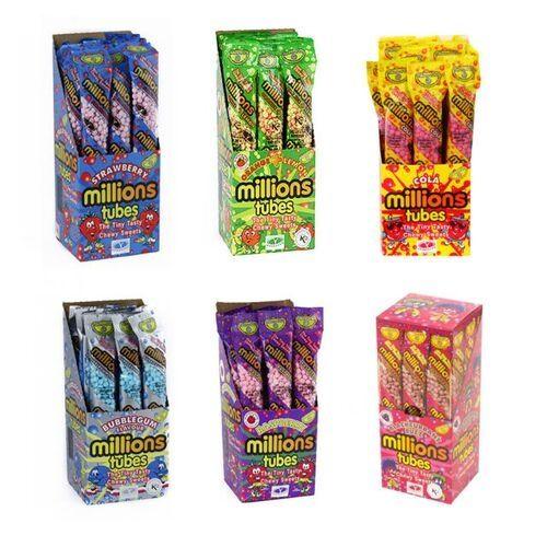 Millions Tubes offer a delightful assortment of tiny chewy sweets, each tube bursting with intense flavor. These tubes are compact and convenient for retail, making them a perfect addition to your candy selection. Available in a variety of flavors, they cater to a wide range of taste preferences. Millions Tubes are known for their long shelf life and strong consumer appeal, especially among younger demographics. Their vibrant packaging and unique candy form make them a popular choice on shelves. Add Millions Tubes to your inventory to attract customers looking for a fun, flavorful treat. For bulk orders or enquiries, please contact us to explore our wholesale options.